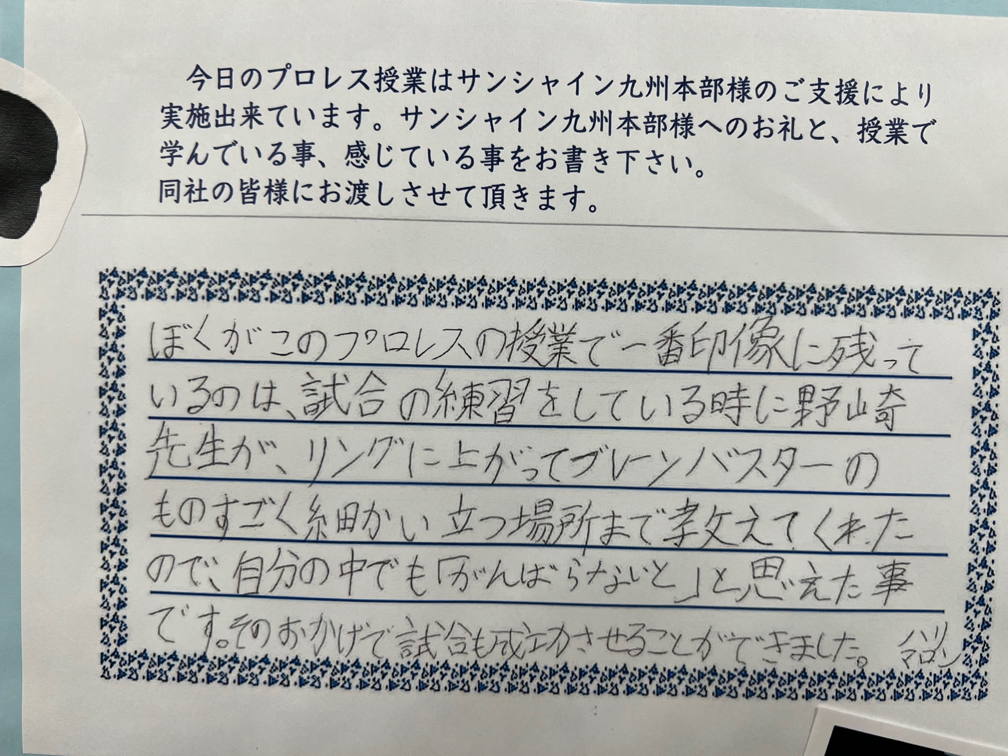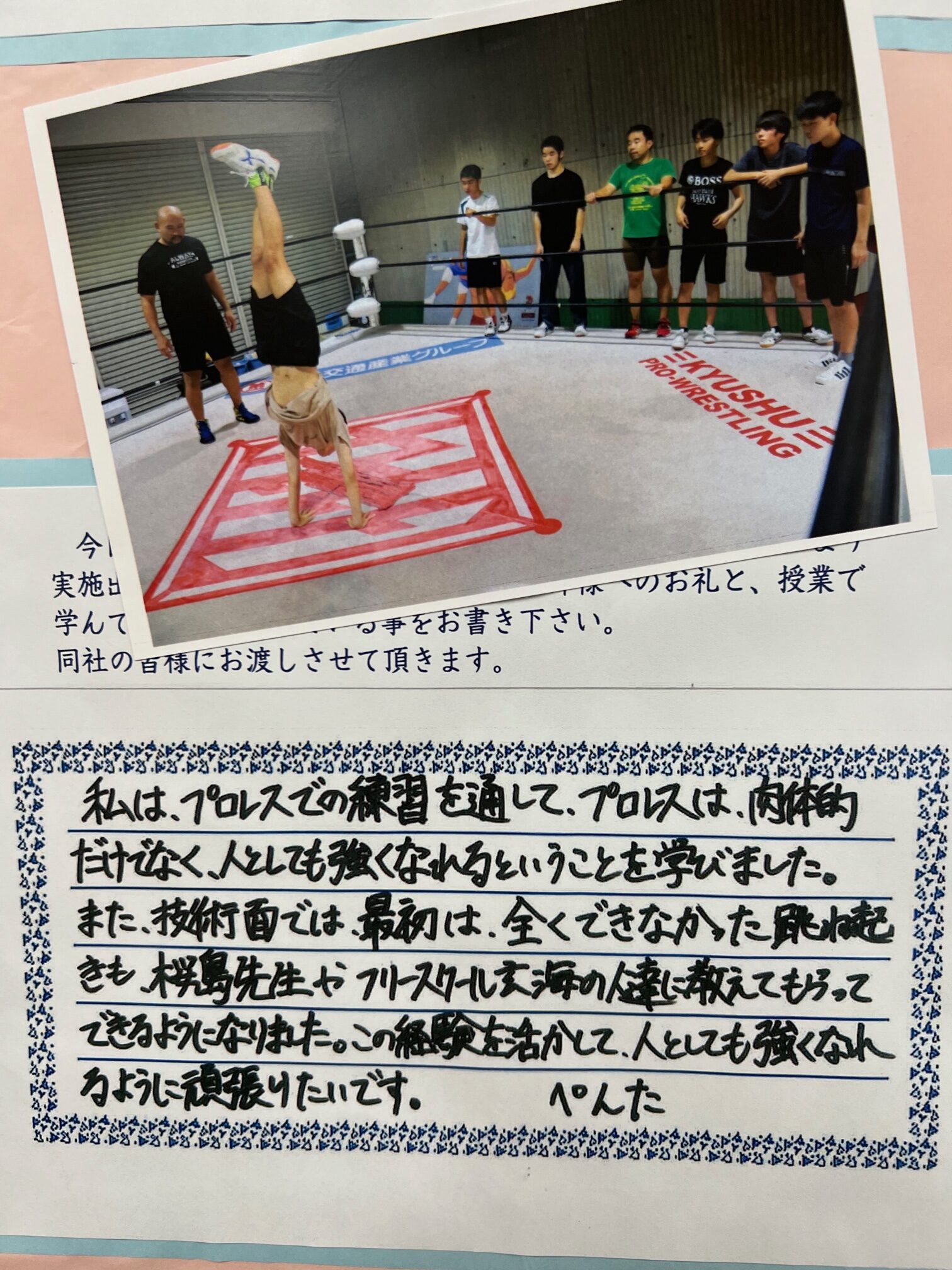 保護者を招き、「成長しました」という報告をゴールにプロレスに取り組んでいるそうです。